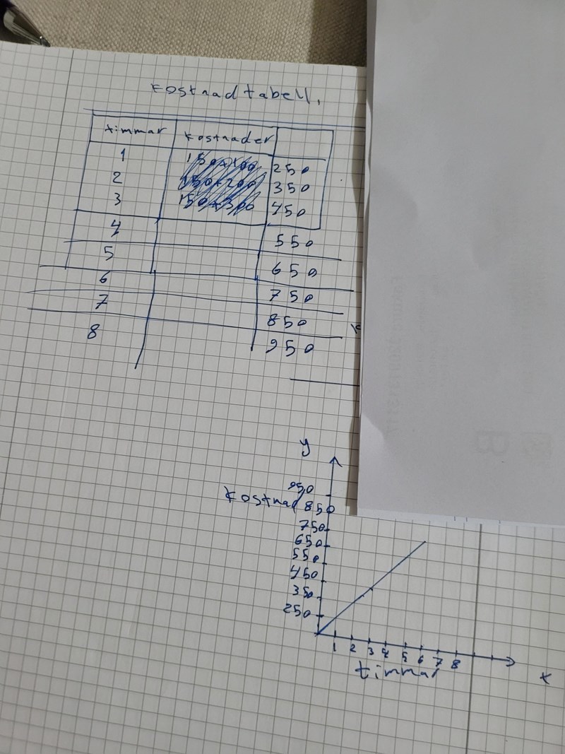 Din kostnadstabell ska ha en kolumn för tiden i timmar och en kolumn för det motsvarande priset. De säger inte hur många rad du behöver, men du kan ta t.ex. 1 upp till 4 timmar. Kan du göra det och visa vad du får?
