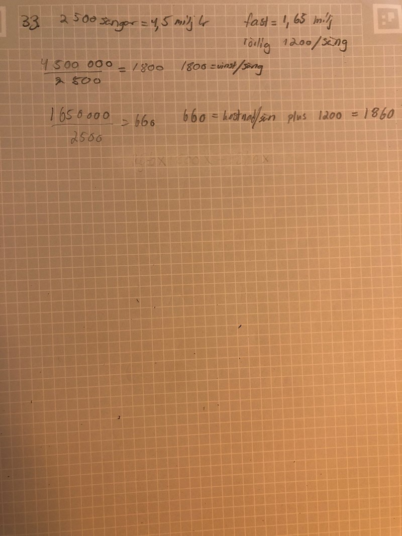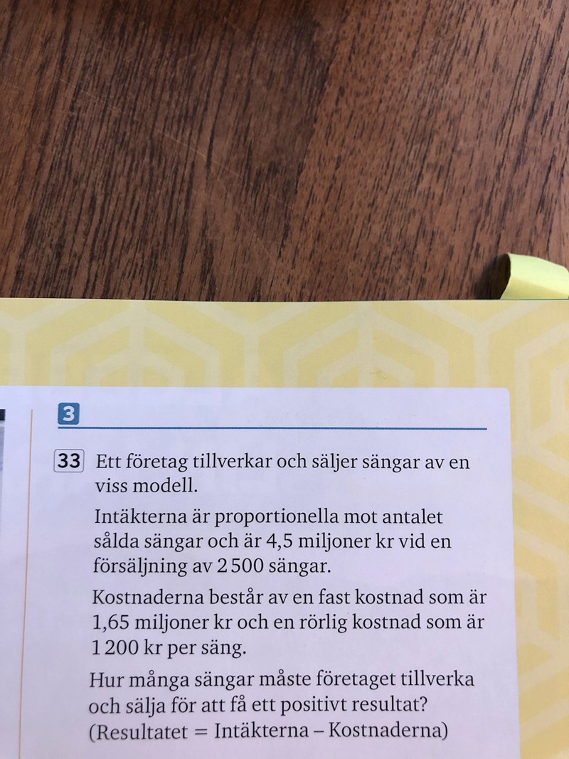 Totalkostnaden för x sängar är 1 650 000 kr plus 1200x kr