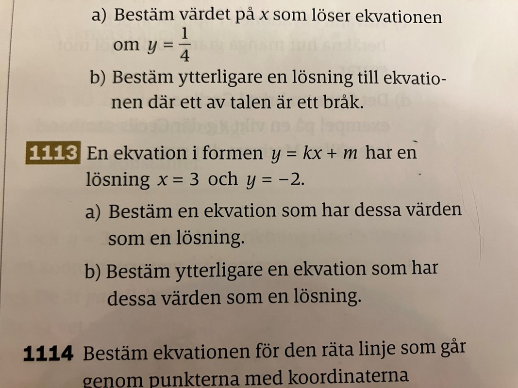 EccEm skrev:Dessa ”kom på själv” uppgifterna har jag det svårare för. Jag tänker kanske att man kan skriva att Y = -1x + 1. Eller att det ska va Y=-3x + 1