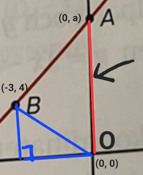 Avståndet mellan O och A ges av y-koordinaten för punkten A (där jag föreslog att du anger punktens koordinater till (0, a)).