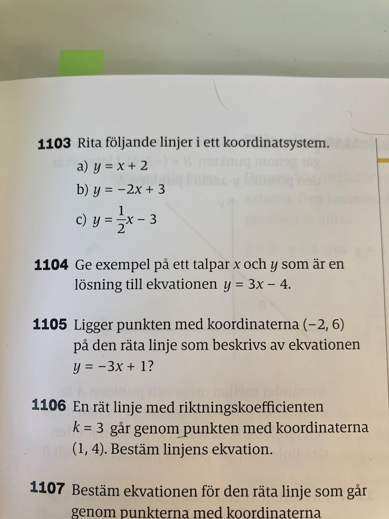 ge exempel på tal par (x,y) som löser y = 3x-4
