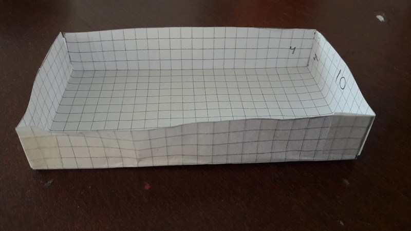 Rita bild på den tillklippta biten så ser du hur volymen kommer att variera beroende på hur höga sidoväggarna blir