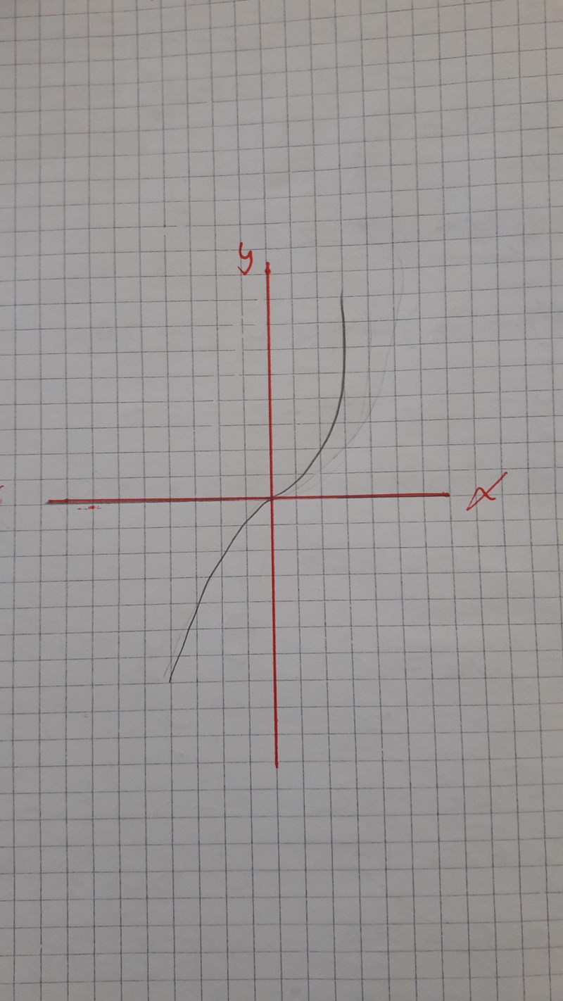 För en funktion gäller: Den är alltid växande, utom i en enda punkt (dvs en terrasspunkt). Rita hur grafen till funktionens derivata kan se ut!