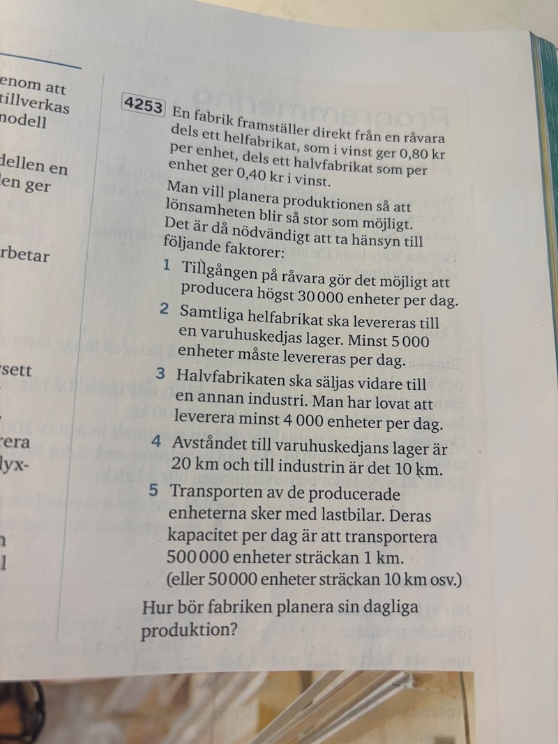 Matte 3b Linjär optimering tillämpningar - uppgift 4253