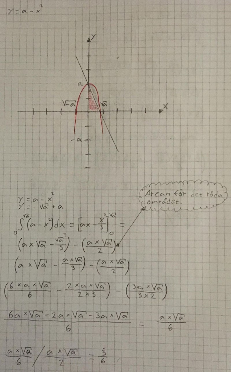 Matte 3b ''Undersök vad resultatet blir för den allmänna kurvan y = a - x^2'' HJÄLP!
