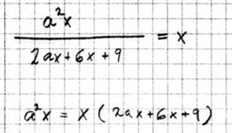 Jag har fastnat i en procedur som jag inte riktigt förstår och som också förekommer i allmänna lösningar av ekvationer. Min fråga är varför vissa termer med x i kan lösas med nollproduktsmetoden. I detta exempel som jag undrar över är a, inte en variabel, och varför kan då konstanten a, ge x, värdet 0 i uppgiften. Som jag tror ska vara syftet med proceduren.
