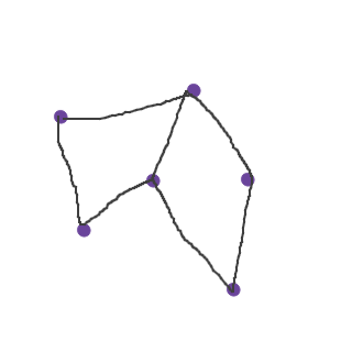 Punkterna (lila) kallas noder, och strecken (gråsvarta) kallas kanter. Grafteori handlar om hur dessa punkter är sammankopplade. Det finns framförallt två olika typer av kopplingar: