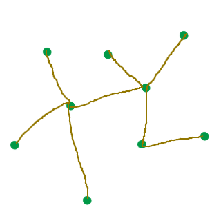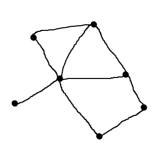 Uppspännande träd: Ett annat grafteoretiskt problem handlar om att hitta en koppling mellan alla ingående noder, utan upprepning. Detta kallas för ett uppspännande träd. Till skillnad från vägarna måste det inte vara möjligt att gå sträckan. Ett uppspännande träd kan se ut som nedan: