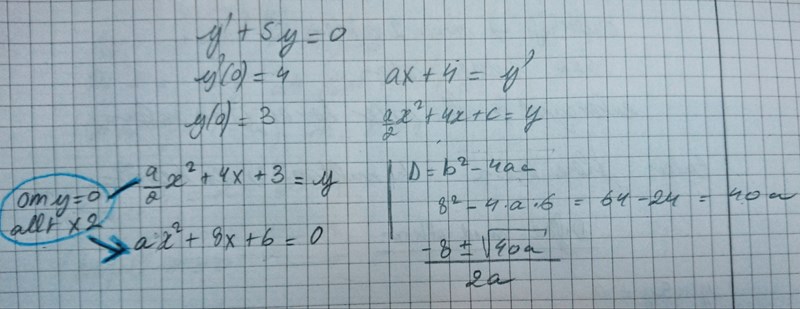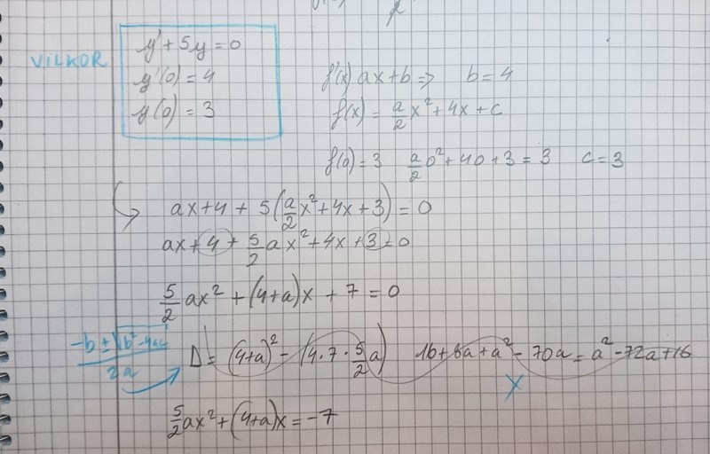 Nej, men du måste lösa y'' + y' + 5y = 0 först. Ändra den ekvationen till y'' + -4y' + 4y = 2x + 7, det blir lättare att lösa.