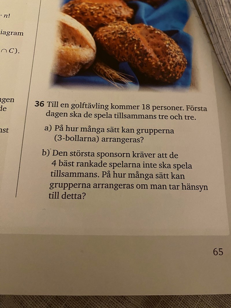 Men sen så tänker jag att man på samma sätt ska dividera med 4! För att få bort de gånger de fyra grupperna med de bäst rankade permuteras. Men detta är inget de tar hänsyn till i facit. Så jag undrar alltså varför man inte delar med 4!
