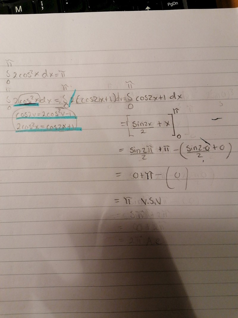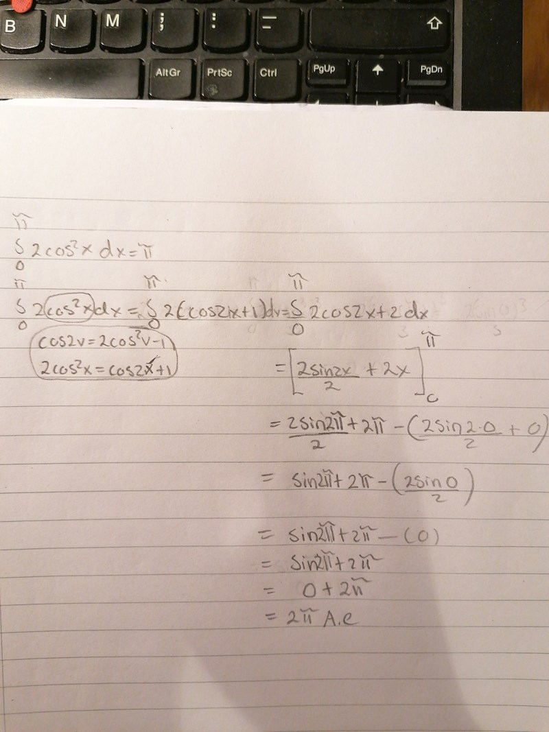 Jag har gjort en omskrivning till dubbla vinkeln innan jag börjat integrera samt samt räkna på.