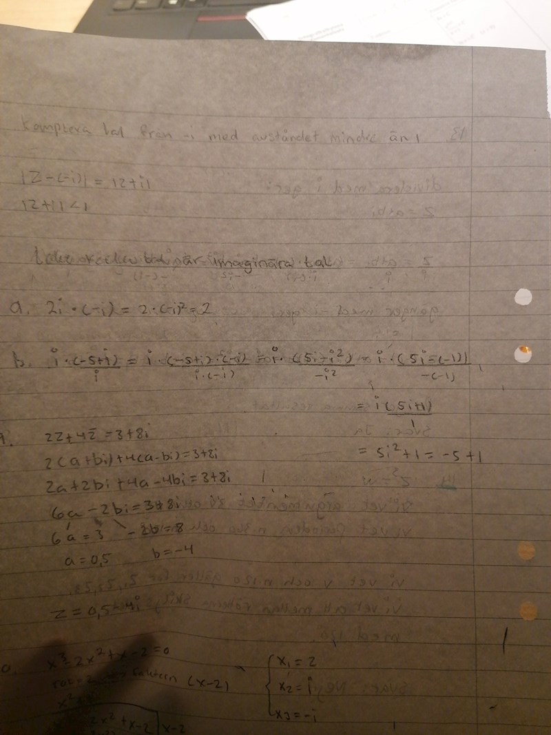 Då kollar vi: i(-5+i) = -5i+i2 = -5i-1 = -1-5i nej det stämde inte.