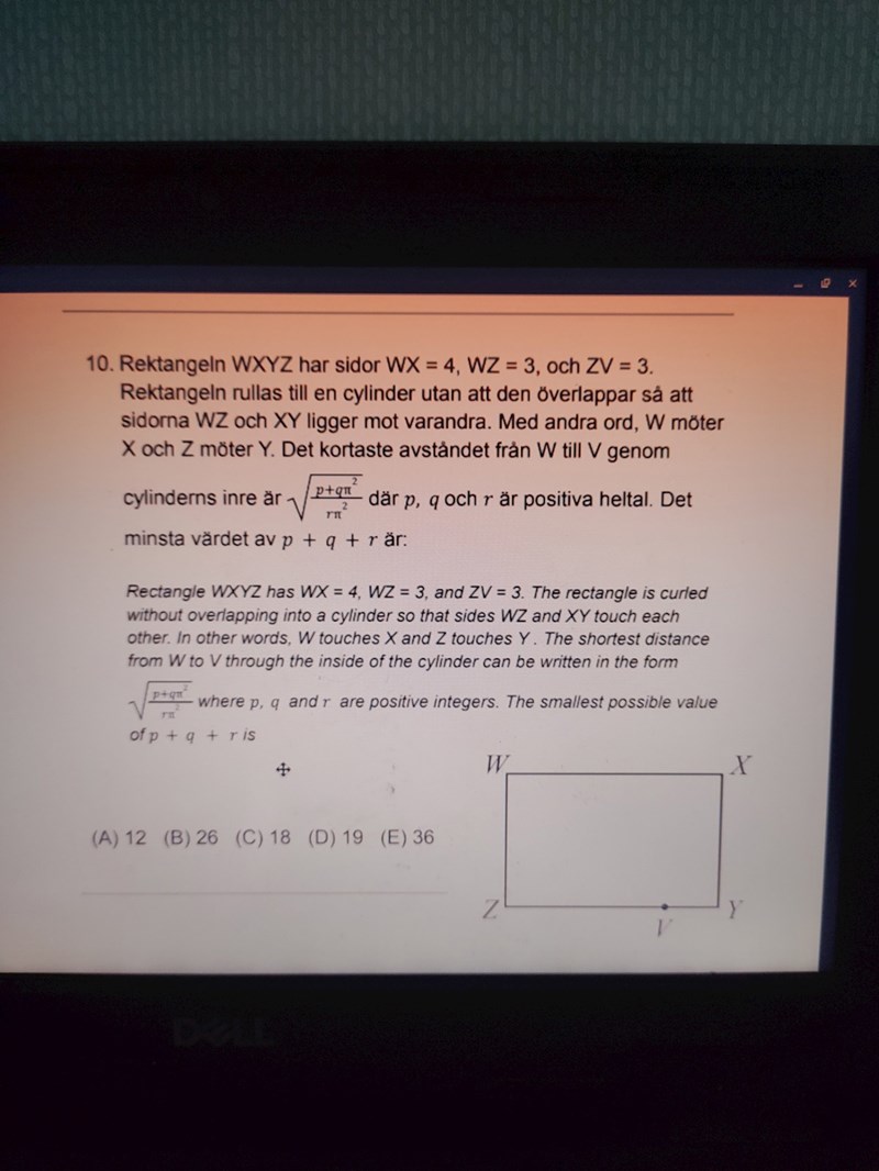 Jag gjorde det och jag fick fram det till √7 men det jag inte förstår är √p+qπ2/rπ2