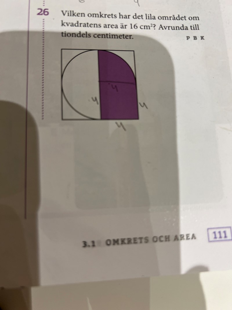 Obs att det är den stora kvadraten som har sidan 4 cm.