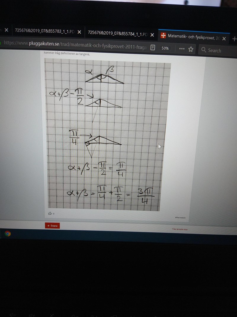 På bild 2, Från högra triangelns hypotenusa vrider han pi/2 medurs där strecket är ritat.