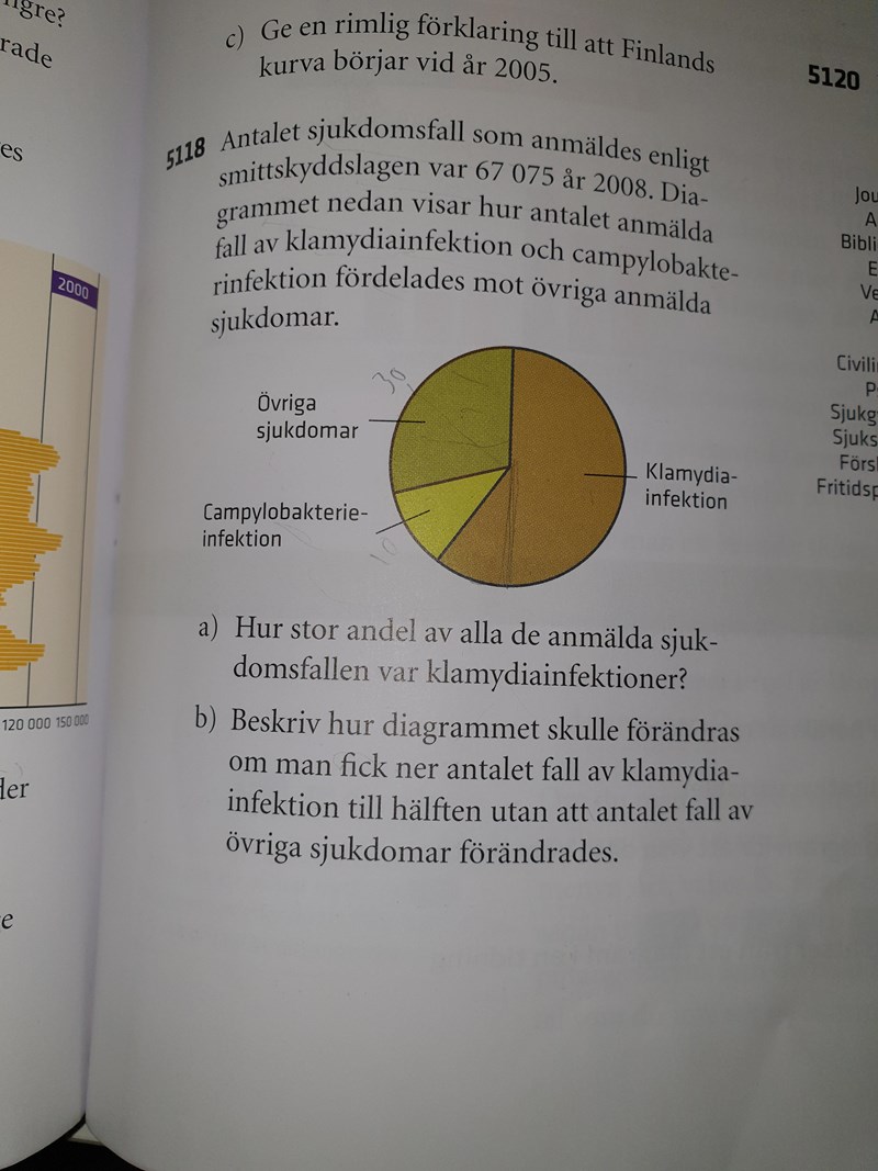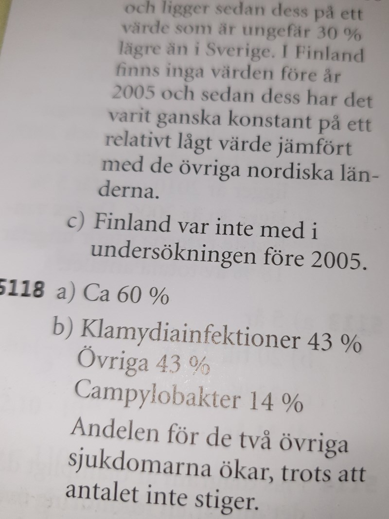 b) hur blir det 43% Klamydiainfektioner samt 43%övriga om vi ska reducera till hälften från 60% blir det inte 30% om det är hälften ??