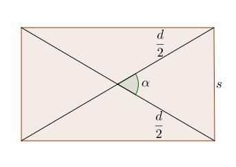 En rektangel har diagonalläng d l.e. Den spetsiga vinkeln mellan diagonalerna är a. Givet att cos(a)=p, bestäm och ange längden av rektangelns kortare sida som en funktion av p.