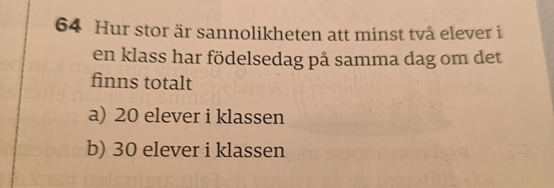 Matte origo 1c sannolikhet att minst 2 elever i en klass har samma födelsedag