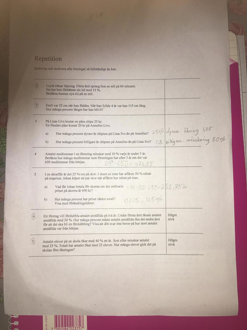 Laura70 skrev:Tjo, är mitt svar på 3an rätt?