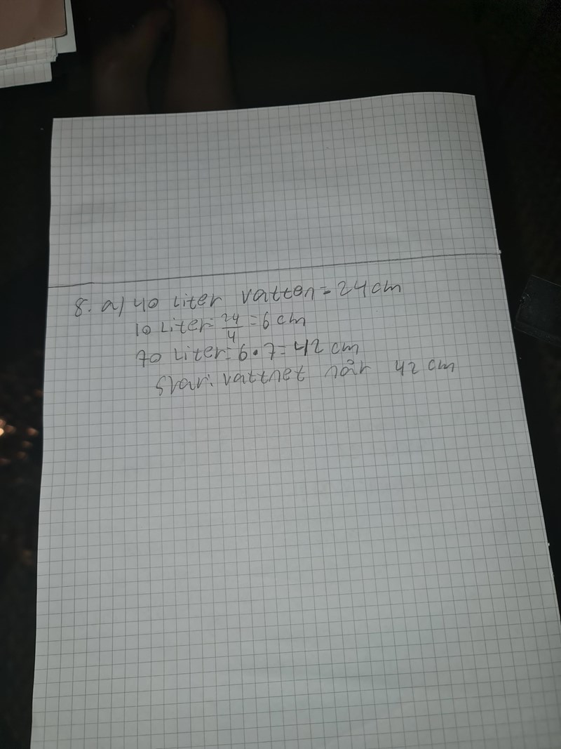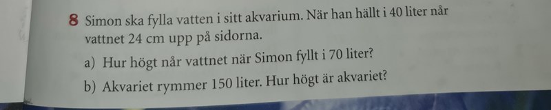 Visa hur du har försökt på den. Du vet ju att 10 liter vatten ger en höjd på 6 cm.
