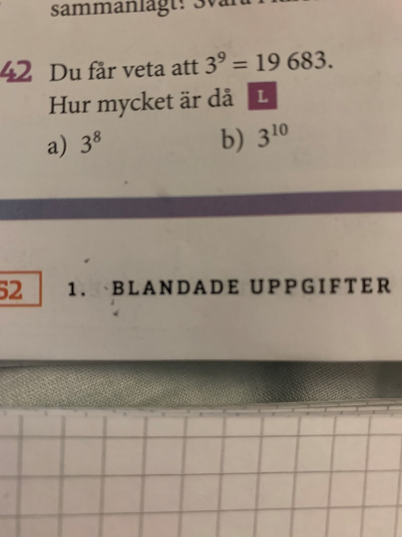 Beräkna 3^8 och 3^10, givet 3^9