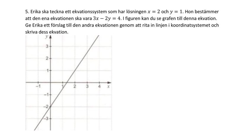 Du ska dra en rät linje, som korsar den befintliga linjen, i punkten (2,1) och skriva dess ekvation