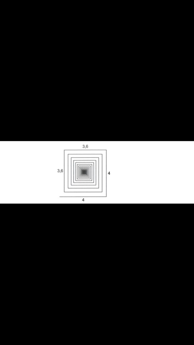 Det är en figur som visar en fyrkantig spiral och den består av 60 sträckor som parvis är lika långa. Sträckornas längd minskar successivt med 10%.
