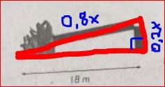I denna triangel är hypotenusan alltså 0,8x och kateterna är 0,2x och 18 meter.