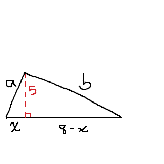Vi kallar sidorna i den stora triangeln för a och b, och vi kan dela upp hypotenusan i x och . Vi vet att , men från situationen: