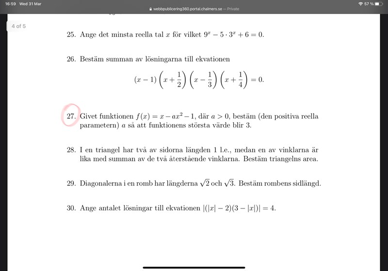 Jaa juste max-värde syftar ju till derivatan! Jag testar igen, tack smutstvätt!