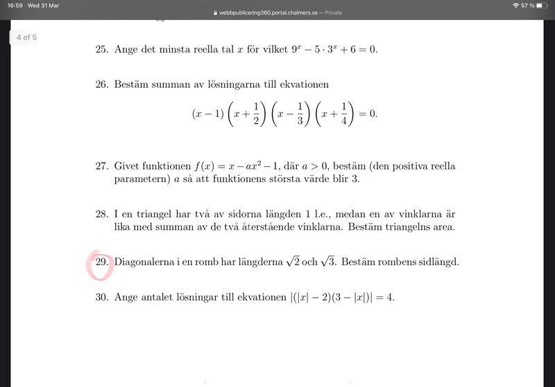 Mattefysikprovet 2007 Q29 bestämma sidlängd i romb