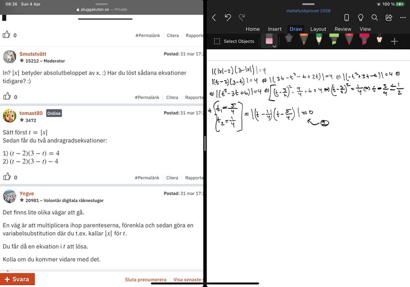 L1vL skrev:Micimacko skrev:För att du tar bort beloppstecknen, så du vet inte om det ska vara + eller - 4 innanför.