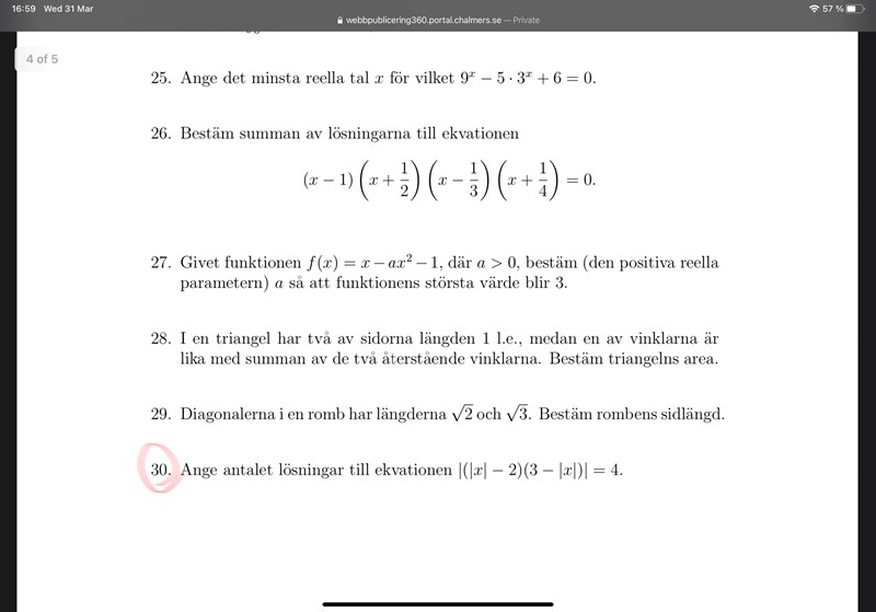 Mattefysikprovet 2007 Q30 absolutbelopp på absolutbelopp-ekv