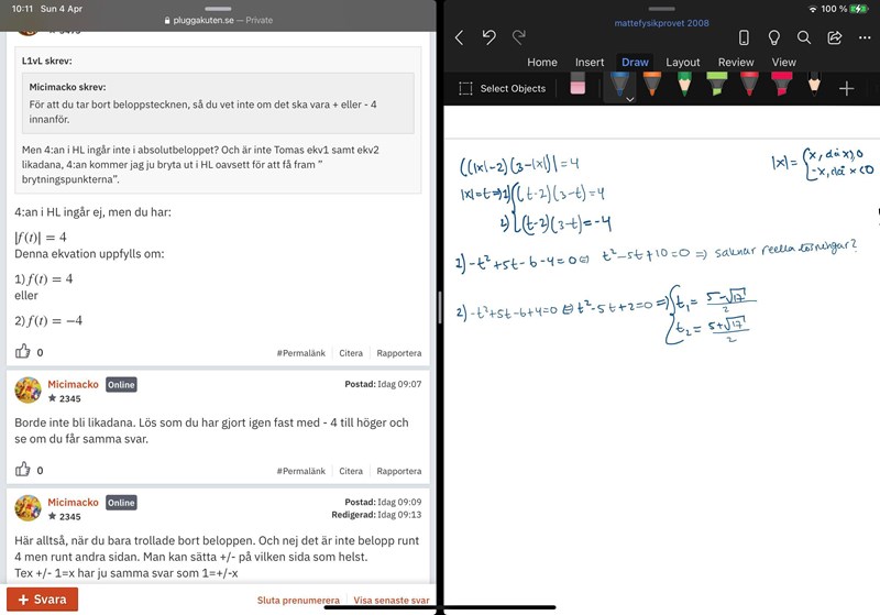 Men 4:an i HL ingår inte i absolutbeloppet? Och är inte Tomas ekv1 samt ekv2 likadana, 4:an kommer jag ju bryta ut i HL oavsett för att få fram ”brytningspunkterna”.