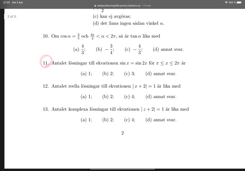 Mattefysikprovet 2008 Q11 sinx=sin2x
