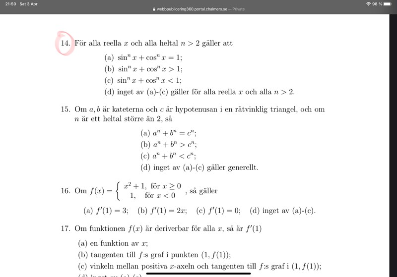 b) och c) faller då bort för alla n.