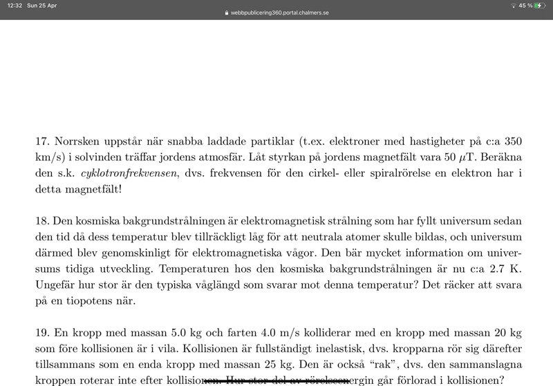 Eftersom du vill ha frekvensen är det kanske bra att byta ut hastigheten mot vinkelhastigheten i uttrycket ovan. Utnyttja att att så kommer mycket förenklas.