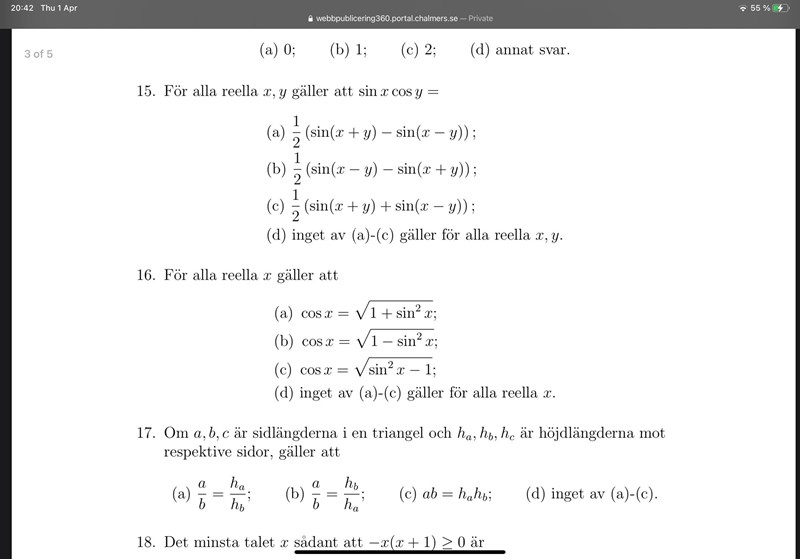 Svarade b på fråga 16, tänkte på trig-ettan, men rätt svar är d, hur kommer det sig?