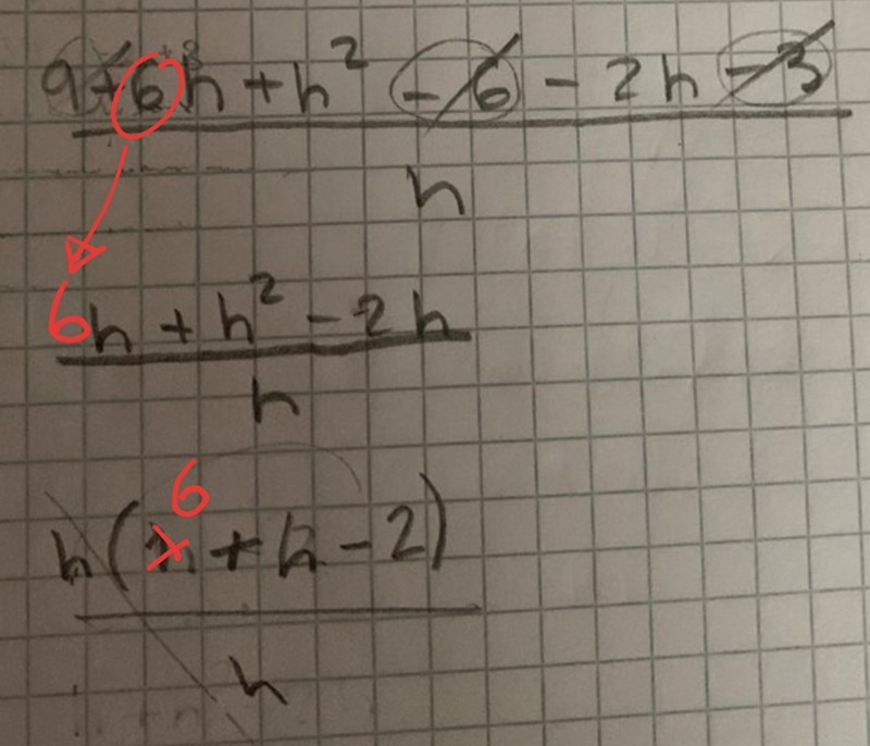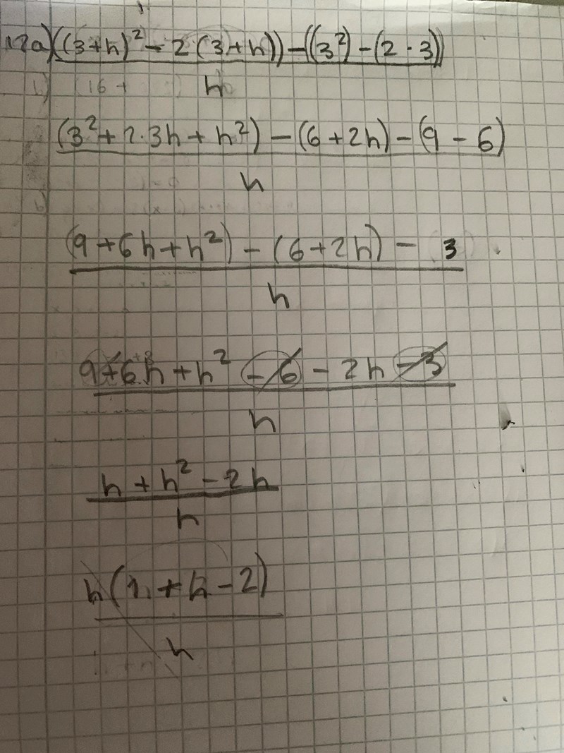 Du kan börja med att sätta x = 3+h och x = 3 i funktionen ovan. Kan du räkna därifrån?