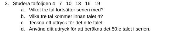 Menar du att "Värdet ökat med 3 då vi går till nästa tal i talföljden"?