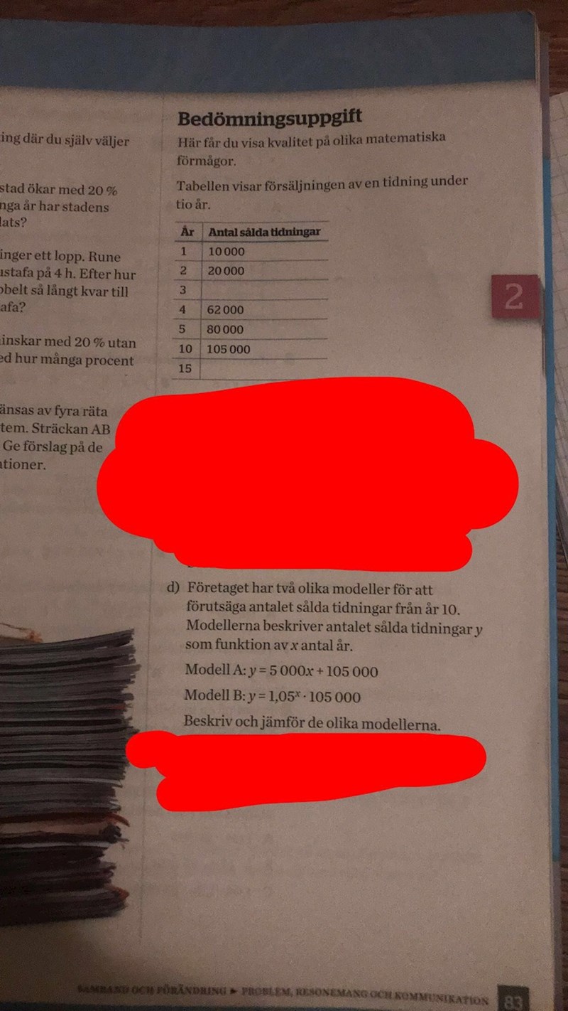Du kan se att antal sålda tidningar inte ökar linjärt (jämför antal sålda tidningar mellan år 1 och 2 samt år 4 och 5)