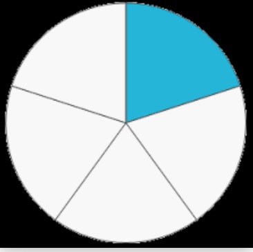Hela cirkeln är en hel (1) som uppdelad i fem lika stora delar, varje del är en femtedel. Sen tar man bort en femtedel (alltså en bit) då blir kvar 4 bitar, alltså 4 femtedelar