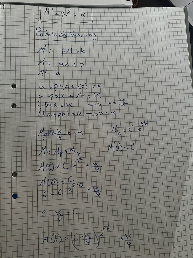 JohanF skrev:Förutom att du har använt samma bokstav för startvärdet M(0), som för den godtyckliga konstanten i allmänna lösningen, så tror jag inte det är något fel.