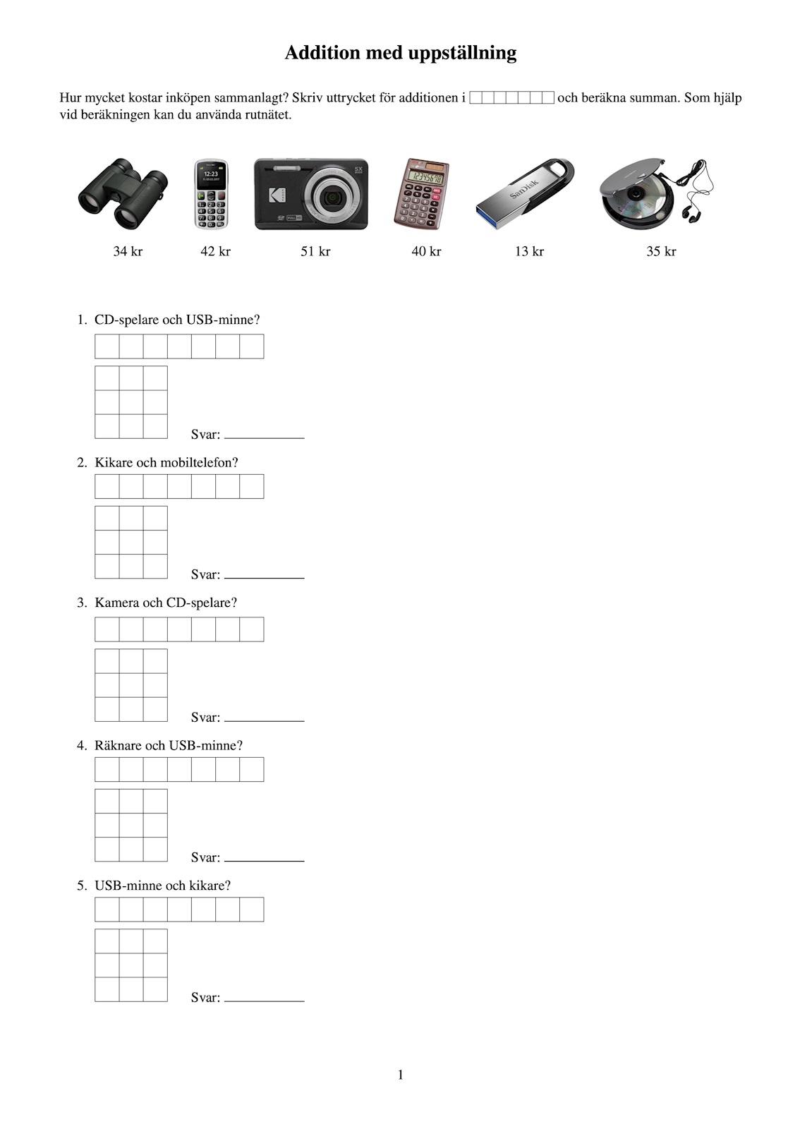 De 9 rutorna i en kvadratform är nog till för att symbolisera "en bit av räknepapper" och där skall du ställa upp beräkningen