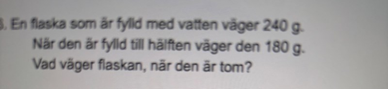 Flaskans vikt minskar då från 240 g till 180 g, dvs vikten minskar med 60 g.