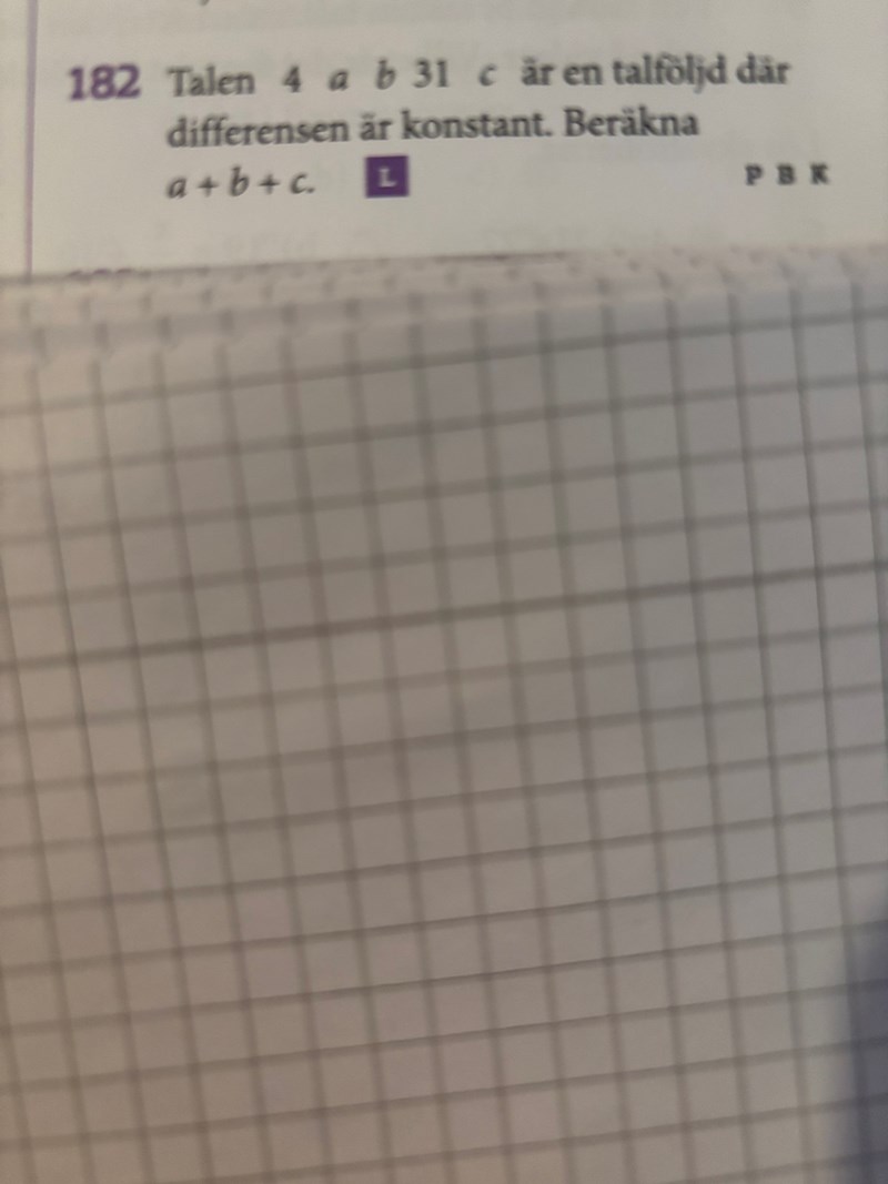 Att differensen är konstant betyder att det lika stort hopp från 4 till a som från a till b och som från b till 31.
