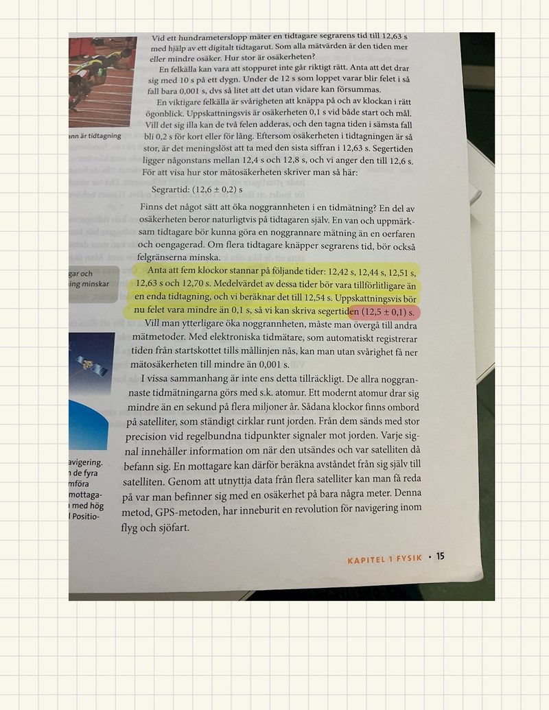 T ex så har vi i boken Tmin=12,42 Tmax=12,70. Tmedel är 12,54. Borde inte osäkerheten vara 0,2?