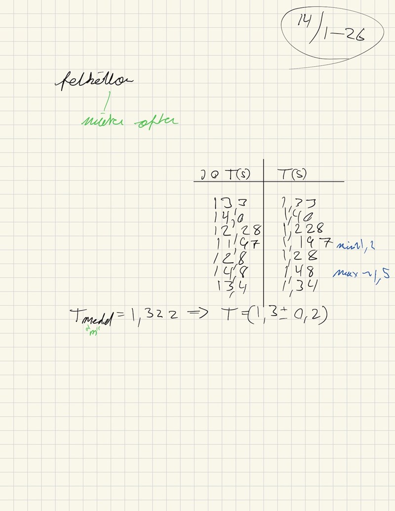 Under lektionsanteckningarna mätte vi en grej (minns ej vad det hette men den gick upp och ned; harmonisk svängning) och förstår fortfarande inte var man får osäkerheten ifrån.