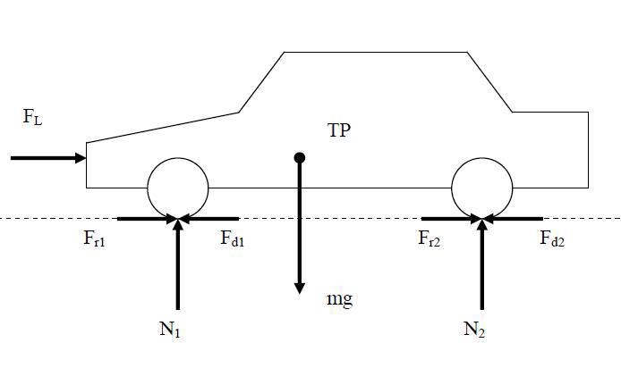 sanroo01 skrev :Jag uppfattar det som om det inte är i jämvikt i X-led för att det endast är fram hjulen som driver, eller så är det för att bilen rör sig och jag har inte tagit med luftmotståndet.