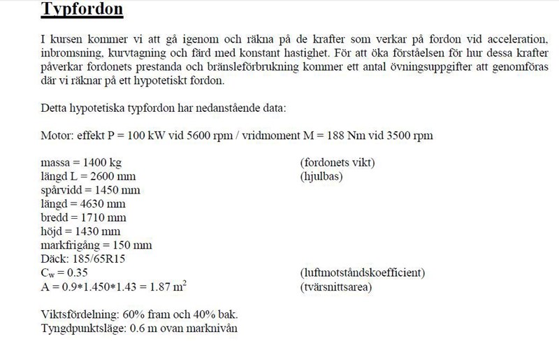 Jag läser en kurs som heter fordonsteknik. Mycket av mitt material kommer från kompendium från läraren själv.